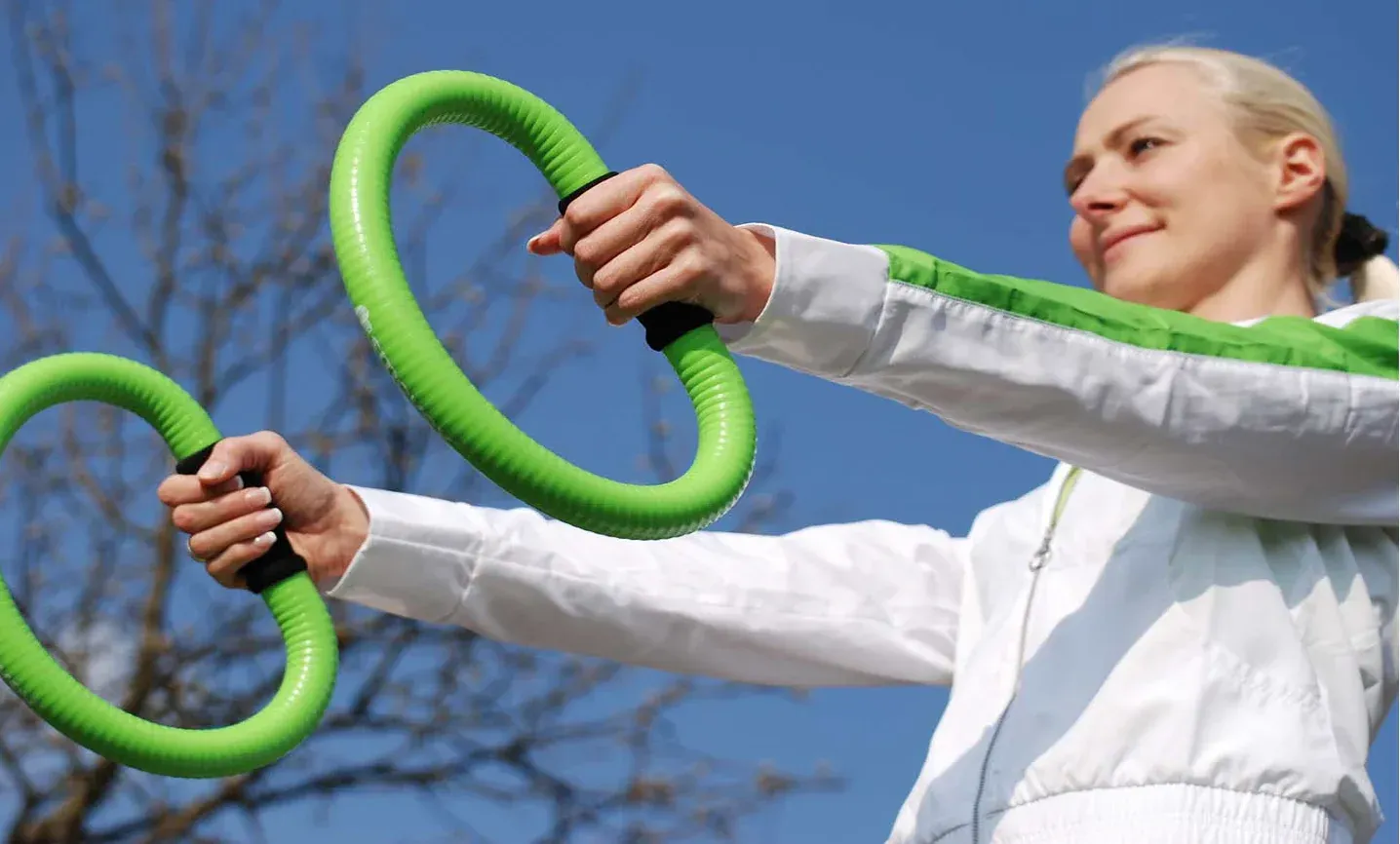 - Stand upright and hold the Smovey rings in your hands.